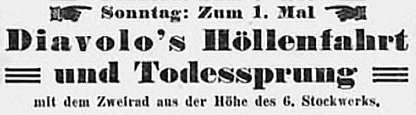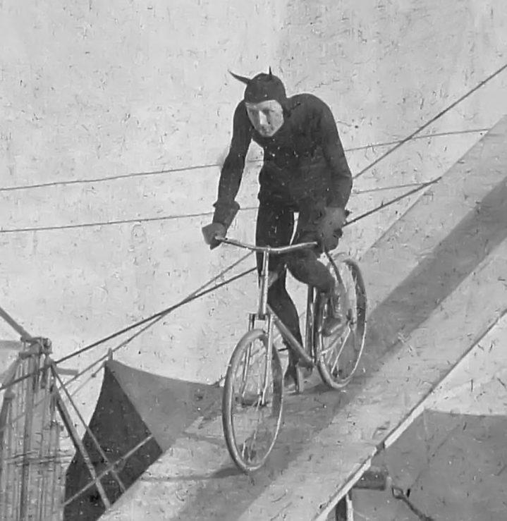 Der Amerikaner Conn Baker war ein berühmter Zirkusartist. Unter dem Künstlernamen Allo Diavolo zeigte er waghalsige Fahrradnummern wie die „Höllenfahrt“ und den „Todessprung“. Er war die erste Person, die mit dem Fahrrad einen „Loop-the-Loop“ perfektionierte.