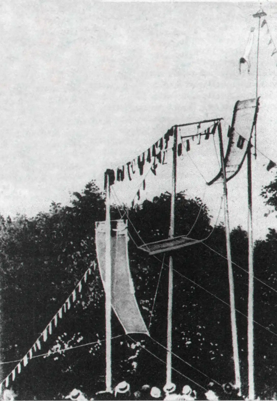 Der Artist Julius Jäger war der Erfinder des „Todessprungs“. Als „Cliff Aeros“ sprang er von einem 24 Meter hohen Mast aus über eine Eigenkonstruktion mit vier Gleitbahnen aus Tuch in die Tiefe. Zwischen den Bahnen flog er frei, änderte die Richtung und passierte manchmal auch einen mit Messern gespickten Reifen.